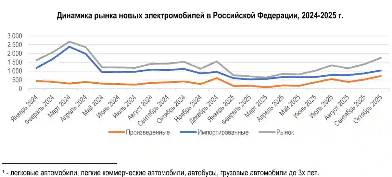 Минпромторг опубликовал данные о продажах электромобилей и всех автомобилей в России за октябрь 2025 года.